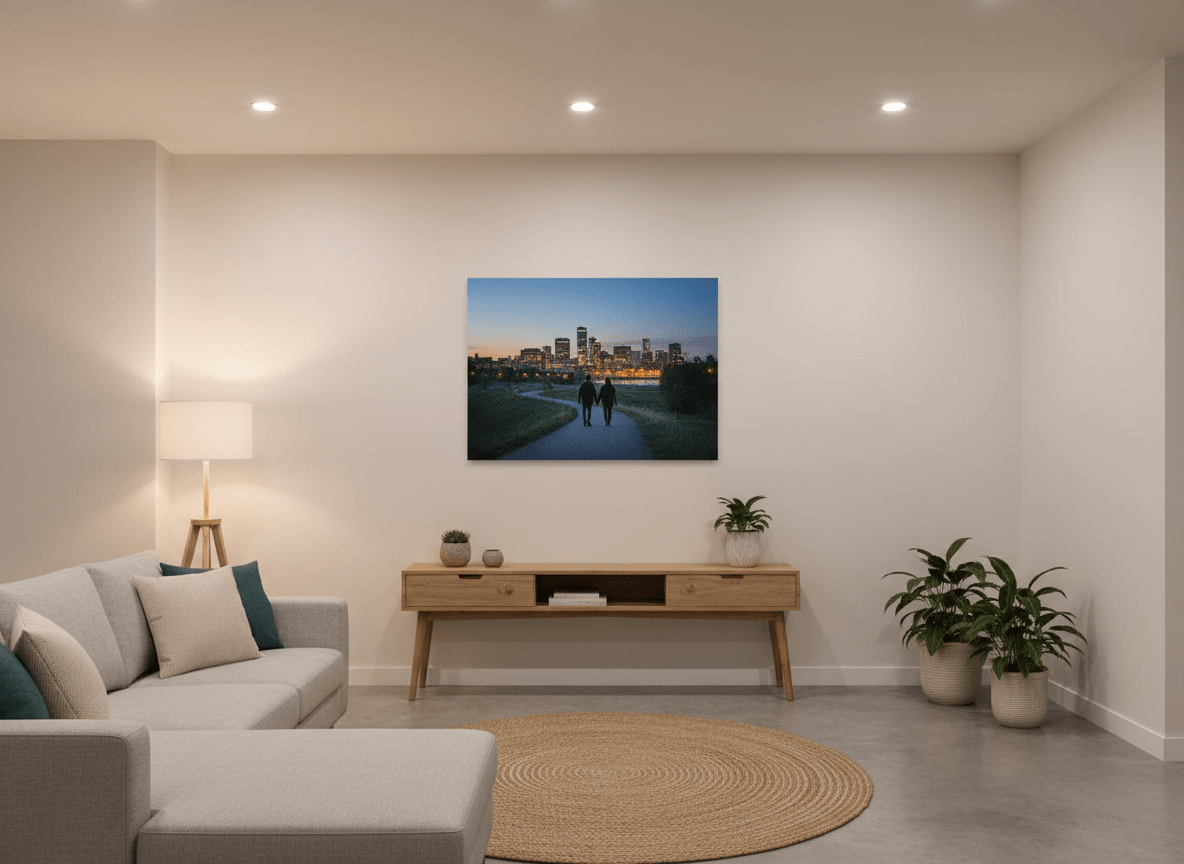 It’s personal, it’s local, it lasts, and it doesn’t end up in a drawer. Below is your Edmonton-specific guide: where to go, what to shoot, how to make the photo print-ready, and how to choose canvas sizes that actually look good in Edmonton homes.